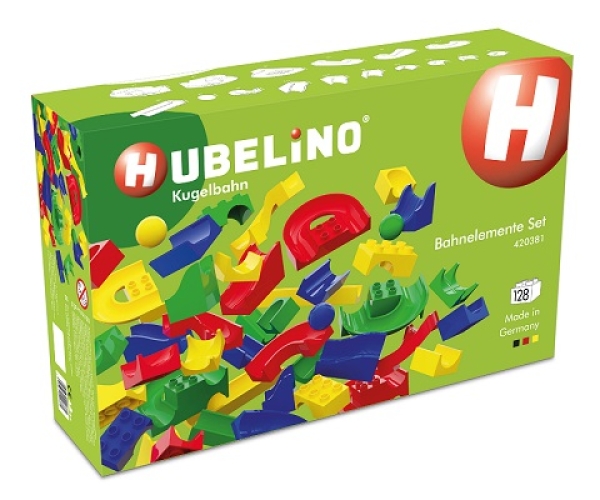 Beleef het nu de: de grenzenloze mogelijkheden van de geheel nieuwe en uitgebreide setbaanelementen van Hubelino! Met 128 elementen maak je nog grotere bouwwerken enspannendere knikkerbanen. Laat je fantasie tot leven komen en beleef uren plezier! Met de standaard Hubelino-blokken van deze set, inclusief de populaire keerlussen rechts- enlinksom, kun je bijna elke baan bouwen. Natuurlijk kun je de elementen combineren metde andere sets van Hubelino om de grootste knikkerbaan ooit te bouwen, voor nog meerbouw- en spelplezier!