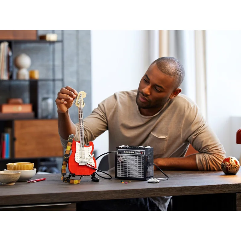 Deze bouwset maakt deel uit van een collectie LEGO sets voor volwassenen. Het is een superleuk cadeau voor gitaristen, Fender fans, muziekliefhebbers en enthousiaste LEGO bouwers.