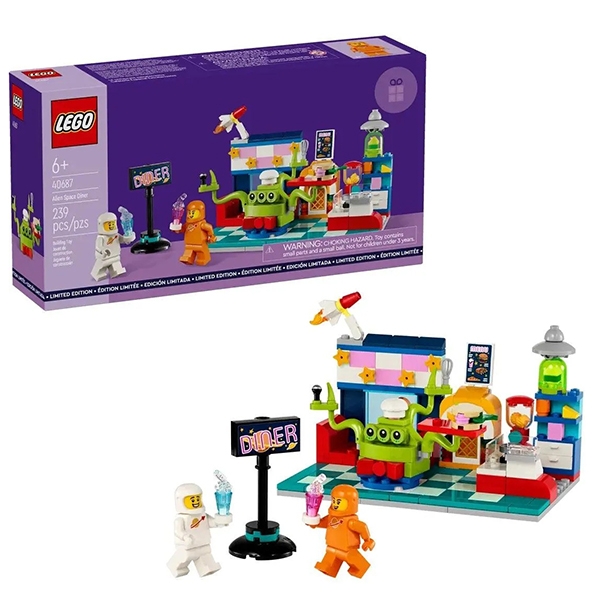 Voed de creativiteit met het LEGO Buitenaards restaurant (40687), een coole ruimteset voor kinderen vanaf 6 jaar die trek hebben in intergalactische avonturen. De set bevat 2 minifiguren van astronauten en zit boordevol mogelijkheden voor rollenspellen. Drink een milkshake naast het raam met uitzicht op een andere planeet, bestel een lekkere burger bij de buitenaardse ober en dans op de muziek van de jukebox in dit geweldige restaurant. Voor nog meer buitenaards plezier is er een keukengedeelte met lades die open kunnen en een menukaart. Eet smakelijk!