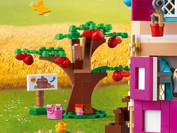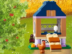 De boerderij heeft afneembare elementen, zodat kinderen het dak kunnen ‘repareren’ met hun gereedschap. De minipoppetjes oogsten groenten met de tractor en aanhangwagen en zorgen voor de LEGO boerderijdieren. In de keuken bereiden kinderen die van gezond eten houden een lekkere maaltijd of maken ze jam die ze in het kraampje kunnen verkopen.