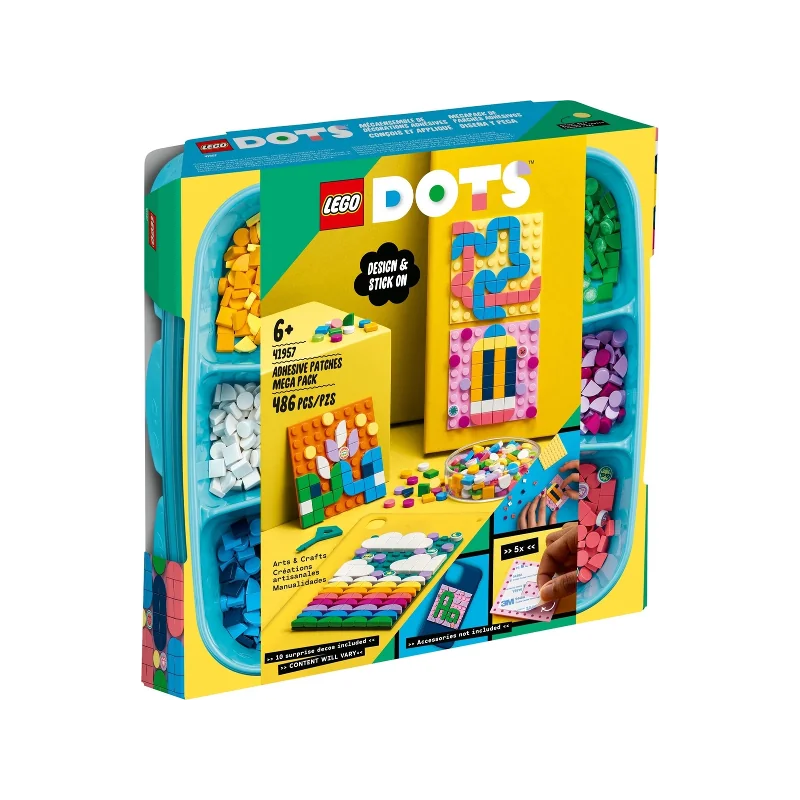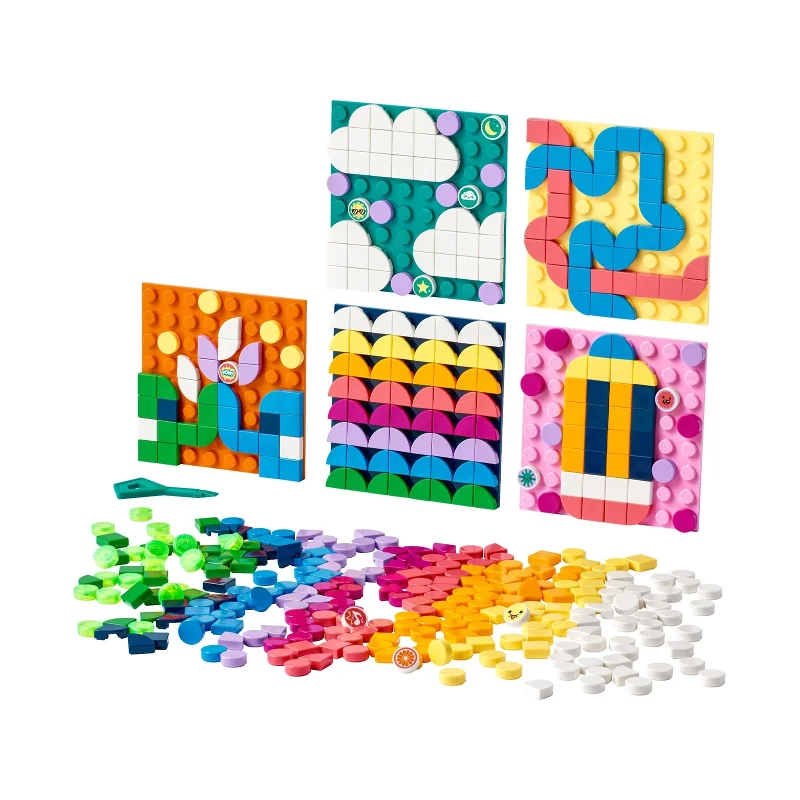 Deze LEGO® DOTS Zelfklevende patches megaset biedt kinderen eindeloze mogelijkheden om zich creatief te uiten op elk recht, hard oppervlak.