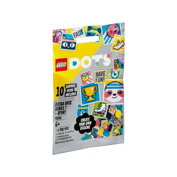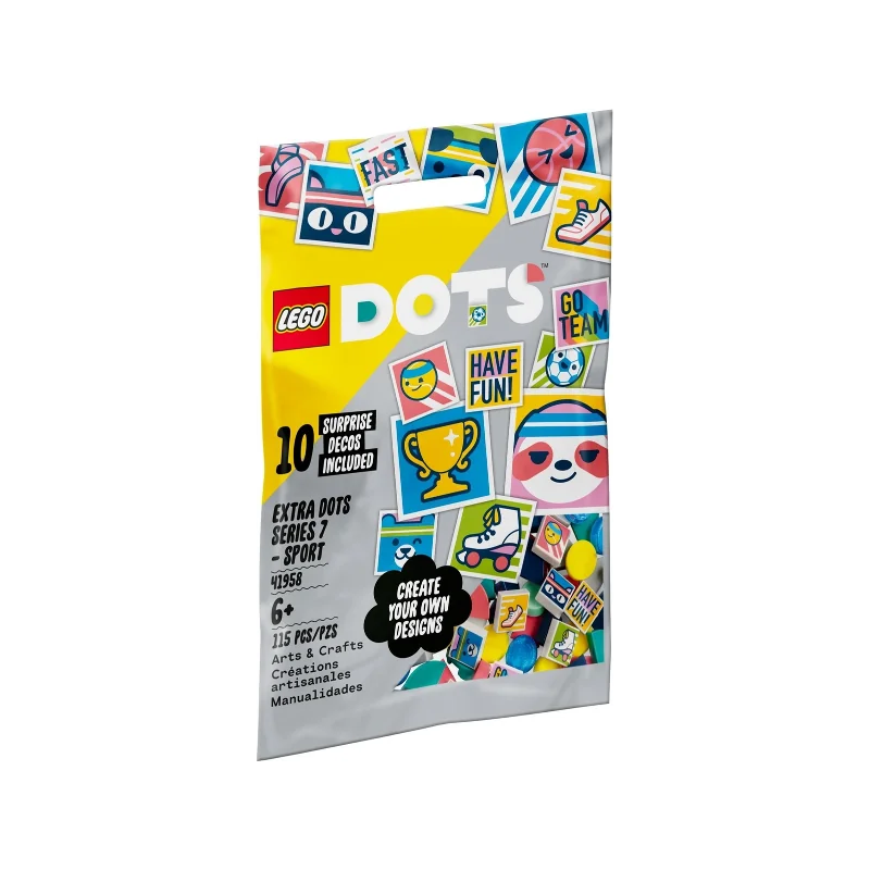 • Ontwerp en verander keer op keer – inspireer kleine knutselfans met deze LEGO DOTS extra DOTS serie 7 – SPORT (41958) knutselset. Het creatieve plezier begint zodra ze het zakje openen