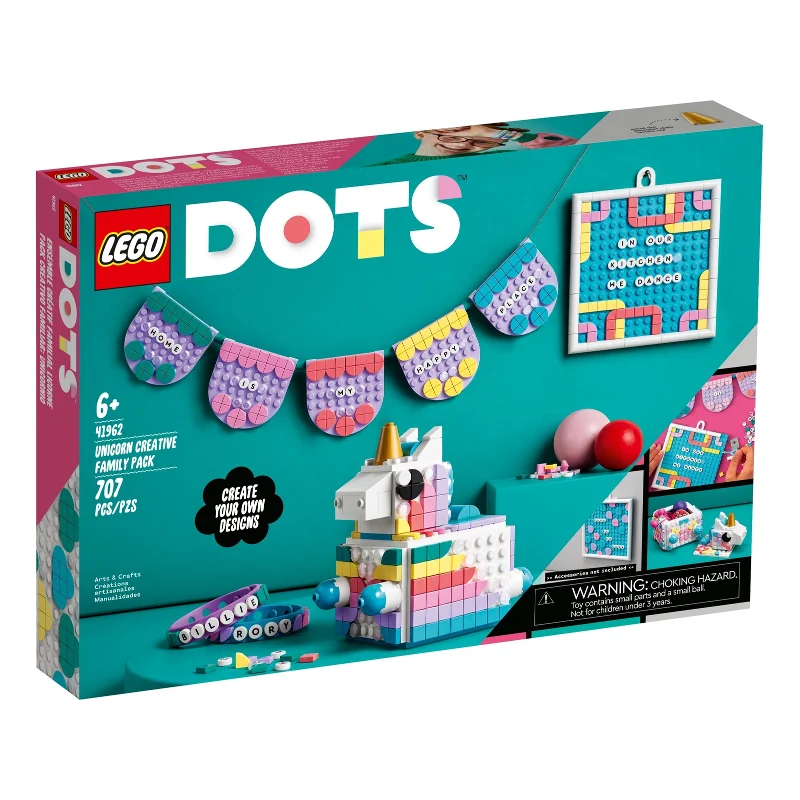- Maken, delen en gebruiken – verras een kleine knutselfan met deze LEGO DOTS eenhoorn creatieve gezinsset (41962). Het creatieve plezier begint zodra je de doos opent
