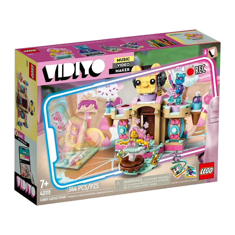 - Inspireer kinderen om hun eigen muziekvideo’s te regisseren en er zelf in op te treden met LEGO VIDIYO Candy Castle Stage (43111). De set bevat 2 minifiguren met accessoires, 14 willekeurige BeatBits en 2 speciale BeatBits.