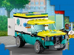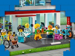 - Wat zit er in de doos – alles wat kinderen nodig hebben om een ziekenhuis met meerdere kamers, een ambulance en een reddingshelikopter te bouwen, plus 12 minifiguren, waaronder 4 personages uit de tv-serie LEGO City Adventures