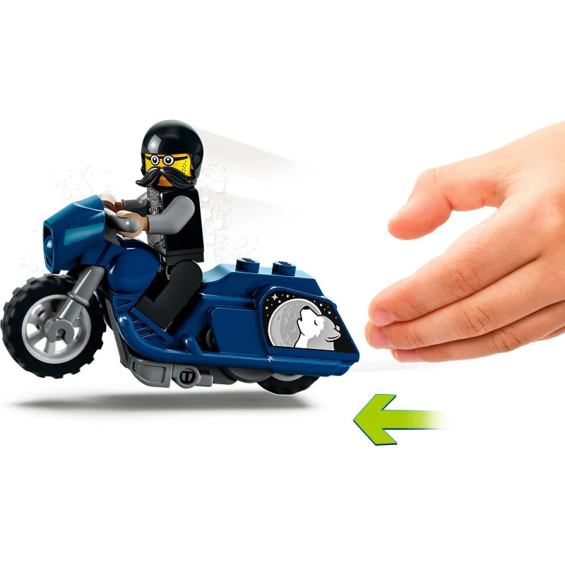 Kinderen beleven urenlang speelplezier boordevol actie met deze LEGO City Touring stuntmotor (60331) speelgoedset met een coole motor met vliegwielaandrijving voor het uitvoeren van geweldige wheelies en stunts. en met de minifiguur van Wolf de Ruige erbij is het tijd voor spectaculaire stuntshows!