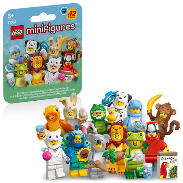 LEGO fans vanaf 5 jaar kunnen deze LEGO Minifiguren Serie 28: Dierenkostuums verzamelen, ermee spelen en ze neerzetten; elke verrassingsdoosje bevat 1 minifiguur van een klein dier