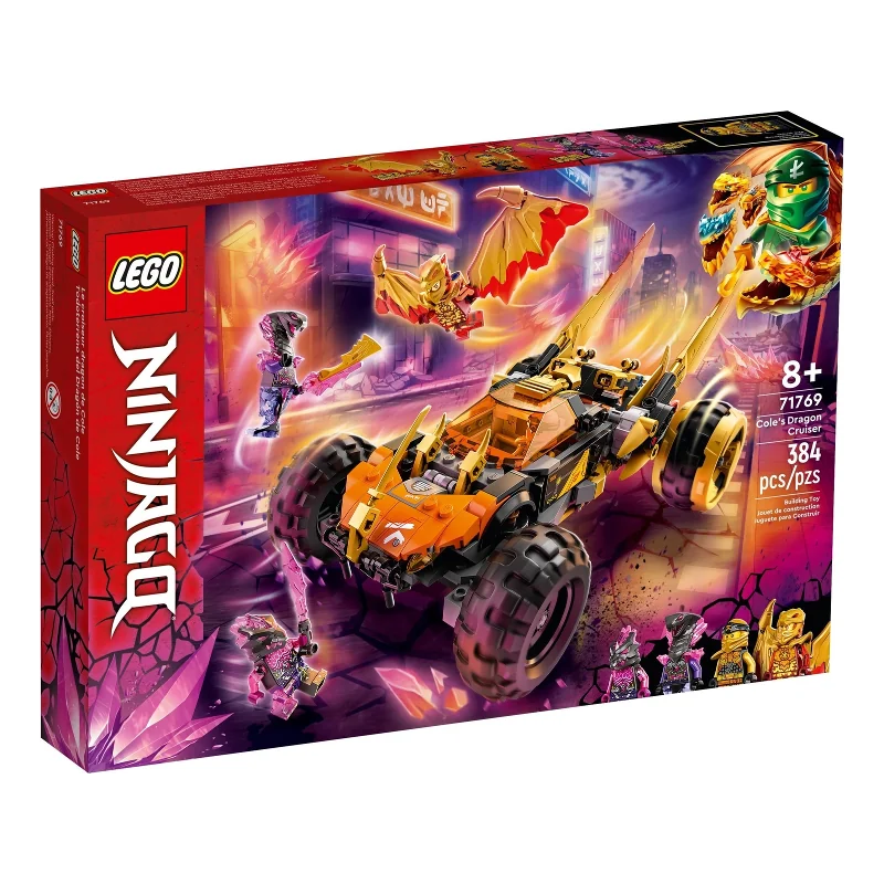 De LEGO 71769 Cole’s drakenwagen is uitgebracht in het jaar 2022. De set bestaat uit 384 onderdelen. Er zitten 2 minifiguren bij en 1 instructie. De set is geschikt voor kinderen vanaf 8 jaar.