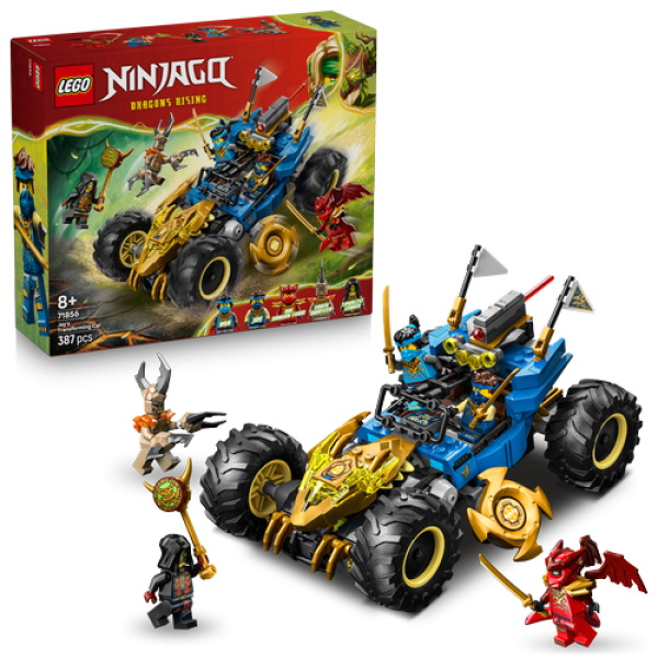 Jongens en meisjes vanaf 8 jaar kunnen urenlang genieten van snelle actie met de bouw- en speelset LEGO NINJAGO Jay’s transformerende auto (71856).