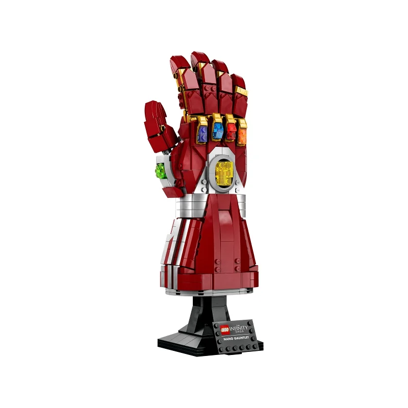 Dit LEGO model van de beroemde Nano Gauntlet is een echte blikvanger. Het felgekleurde bouw- en displaymodel is ontworpen voor volwassen modelbouwers en heeft beweegbare vingers en een stevige basis met daarop een informatiepaneel.