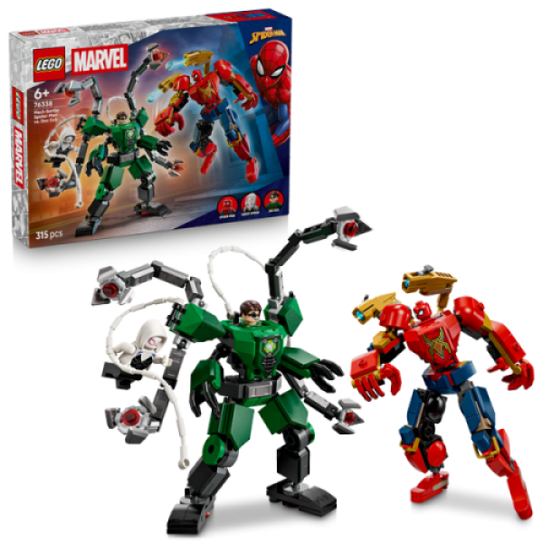 Kinderen kunnen de 2 mecha in allerlei standen zetten om fantasierijke avonturen tot leven te brengen met de LEGO Marvel minifiguren van Spider-Man, Ghost-Spider en Doc Ock. Beide mecha zijn volledig verstelbaar voor maximale dynamische actie en hebben een cockpit die open kan met plek voor een minifiguur. De Spider-Man mecha is uitgevoerd in de stijl van Iron Spider en bevat 2 beweegbare noppenschieters die je kunt bedienen met een knop. De Doc Ock mecha is uitgerust met 4 in allerlei standen verstelbare tentakels. Er zijn ook 2 webtouwen die eenvoudig aan de mecha en minifiguren kunnen worden bevestigd en Ghost Spider heeft koorden die aan de borstkas van de Doc Ock mecha kunnen worden vastgemaakt.