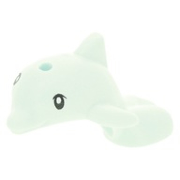 LEGO licht aqua baby dolfijn, springend met zwarte ogen.