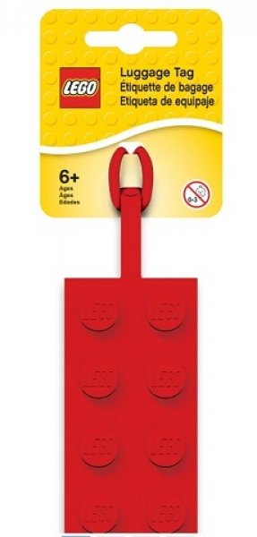 Omvat een siliconen bagagelabel in de vorm van een LEGO steen, met een riempje en ruimte achterop om je contactgegevens op te schrijven.