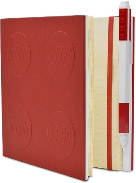 Dit luxe rode notitieboek met 176 gelinieerde pagina’s heeft een harde omslag, sluiting door middel van een LEGO 1×6 plaat. De medium point gel pen heeft ook een 1 x 4 LEGO plaat voor extra bouwplezier. Deze handige notitieboekenset is een geweldig cadeau voor elke LEGO-fan.
