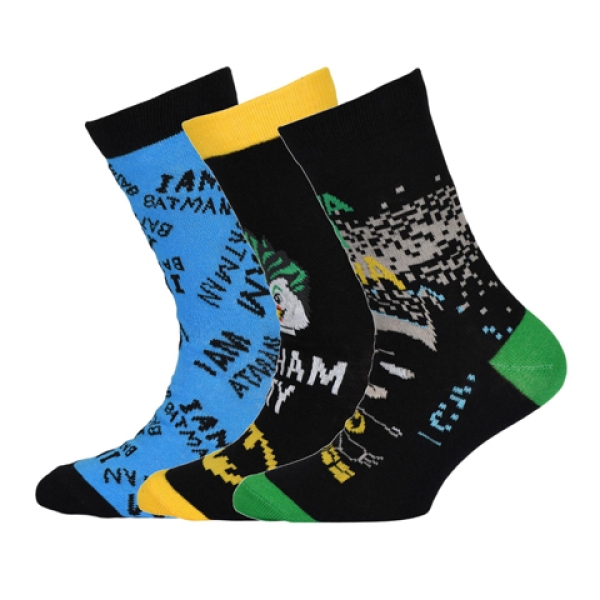 Zachte en comfortabele LEGO Batman sokken met 3 paar per pakket. Een blauw en 2 zwart paar sokken met een LEGO Batman opdruk.