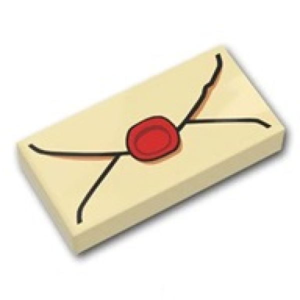 LEGO Tegel 1×2 met opdruk van een envelop met rode wax stempel.