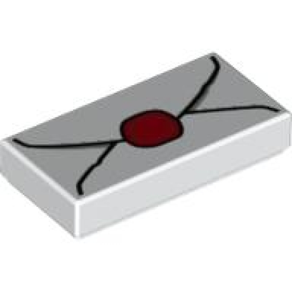 LEGO Tegel 1×2 met opdruk van een envelop met rode wax stempel.