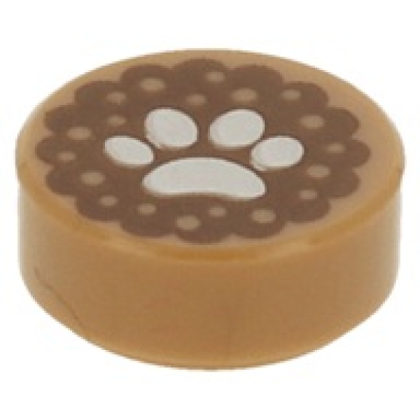 LEGO 1×1 ronde tegel met een witte dierenpootprint.