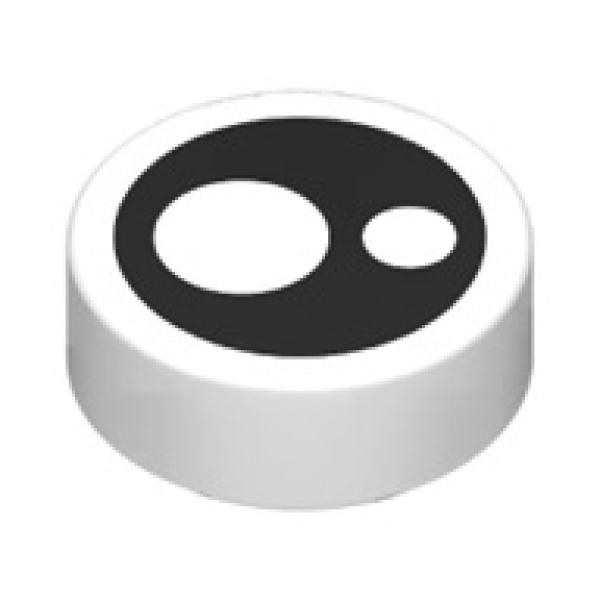 LEGO Tegeltjes, 1 bij 1 nop, rond met een zwart oog / pupil patroon.