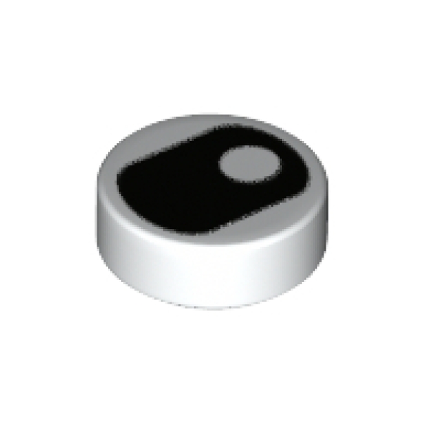 LEGO Tegel Rond 1×1 Wit met zwart oog en pupil patroon, verticaal gecentreerd.