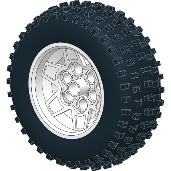 LEGO Band en Wiel. bestaat uit: LEGO Band 75.1 x 28 stekel oppervlak en LEGO Wiel 43.2mm D x 26 met 6 pin gaten.