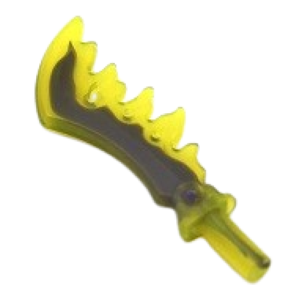 LEGO transparant neon groen gekarteld zwaard op schaal van LEGO minifiguren.