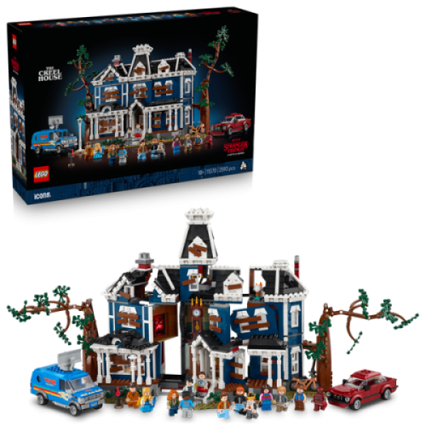 Verken het Ondersteboven met de LEGO Icons Stranger Things: Het huis van de familie Creel (11370) bouwset voor volwassenen, een gedetailleerd model van het griezelige Victoriaanse landhuis